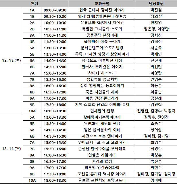 [교내 사이버강의 기말고사 시간표]